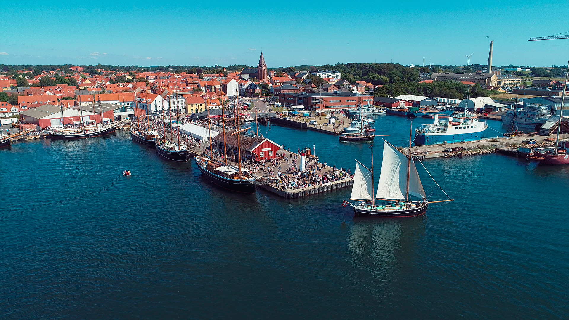 Assens is a charming historic market town with cobbled streets, beautiful merchant houses, and stunning 180-degree views of Little Belt.